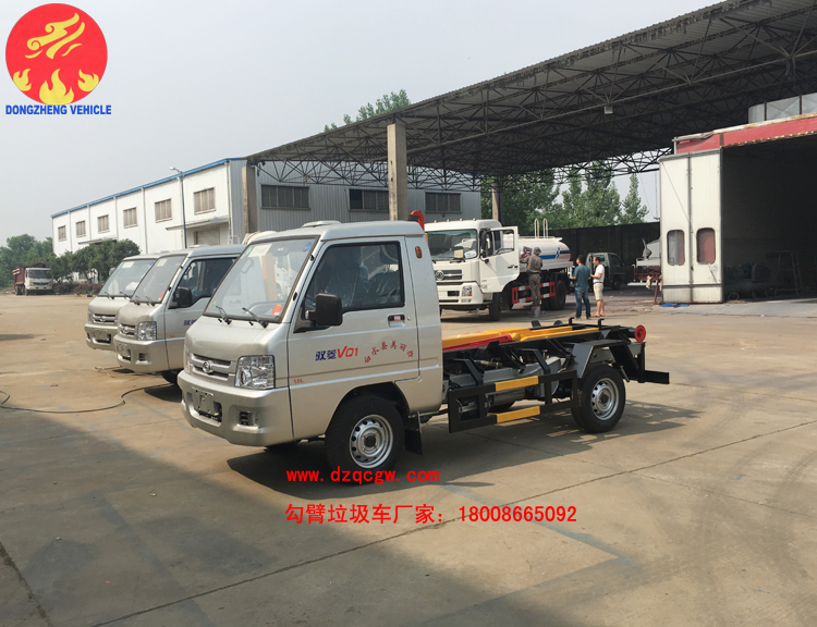 我公司生產(chǎn)的勾臂垃圾車采用高新設(shè)計可伸縮的鉤臂,實現(xiàn)垃圾廂的二次吊裝,自吊上放下,可自行傾倒垃圾。該車結(jié)構(gòu)簡單,操作穩(wěn)定方便,裝卸效率高,機(jī)械化程度高,節(jié)省人力。一車可帶多個大廂,在裝卸的運輸過程中可有效地避免二次污染。