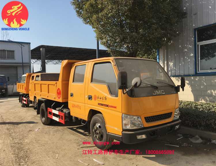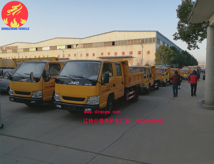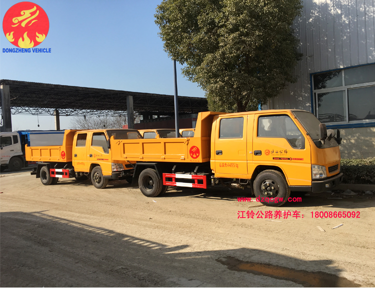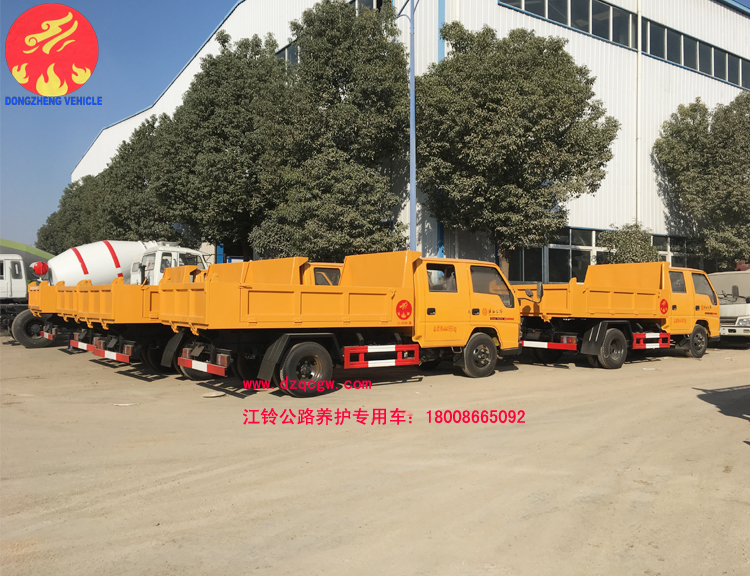 我公司生產(chǎn)的江鈴公路養(yǎng)護(hù)車是一款雙排座自卸車,該車實(shí)用性強(qiáng),性價(jià)比高,是一款適用于公路養(yǎng)護(hù)作業(yè)的理想用車型。主要配置為江鈴雙排駕駛室,3360mm軸距,江鈴115馬力國五發(fā)動機(jī),7.00R16LT鋼絲胎,油剎,5檔箱,排氣制動,原廠ABS。上裝部分主要由液壓系統(tǒng)、操作系統(tǒng)組成。舉升油缸為雙頂油缸,箱體標(biāo)配邊3底4mm。