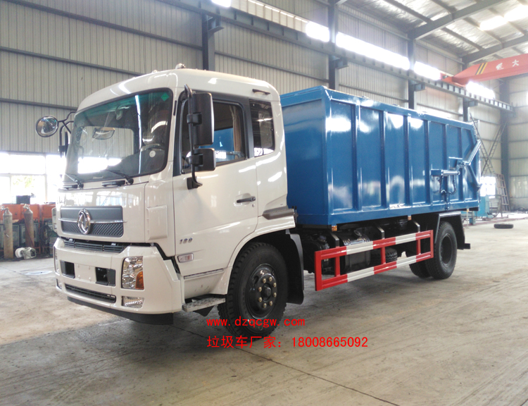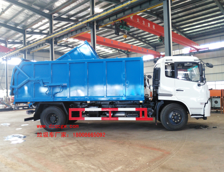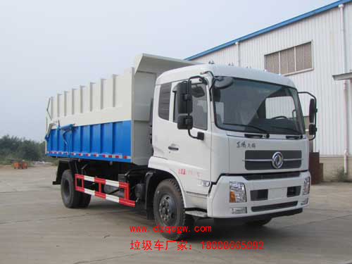 卸料結構:系用箱卸料,由兩只液壓油缸直接舉升車廂進行卸料,箱底與地面夾角不小于45度,以實現(xiàn)垃圾依靠自重能自行卸下的專用自卸運輸車。