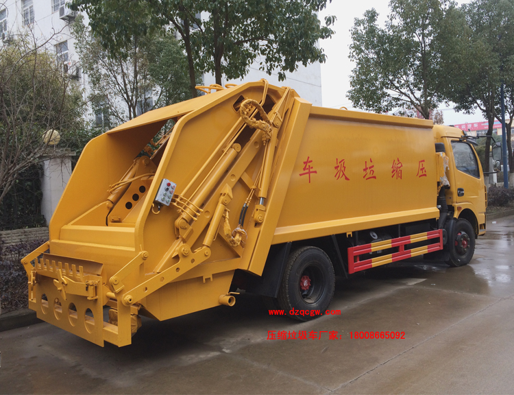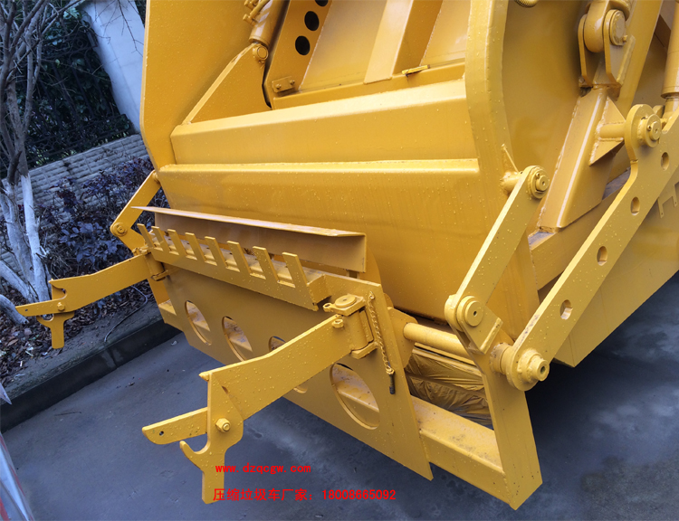 廂體材料為武鋼優(yōu)質(zhì)炭鋼,厚度為邊5mm,廂體容積為7-8立方米。由裝料機構(gòu)、壓縮機構(gòu)、卸料機構(gòu)、油泵、油箱、控制閥等組成的液壓機構(gòu)組成。裝料機構(gòu)由支架、連桿機構(gòu)、凸輪、掛鉤等組成,在油缸作用下,將垃圾桶內(nèi)的垃圾自動翻轉(zhuǎn)倒入料斗內(nèi)。新款有9支液壓缸制動,不帶副壓板,液壓控制操作系統(tǒng)為電動控制和手動控制。