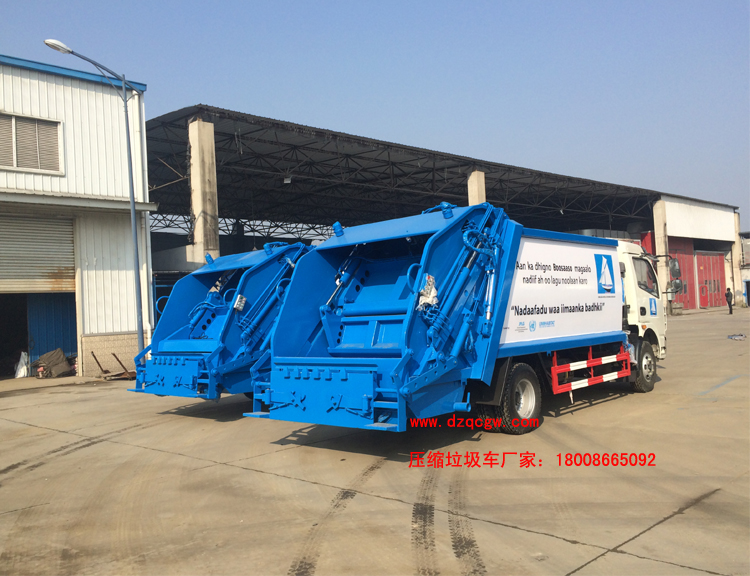 聯(lián)合國(guó)援助非洲的兩臺(tái)8方壓縮垃圾車已下線,該款車型采用東風(fēng)多利卡3800mm軸距,4mm碳鋼板,帶液壓控制,壓縮系統(tǒng)等,可配合1100L鐵制移動(dòng)垃圾箱使用。