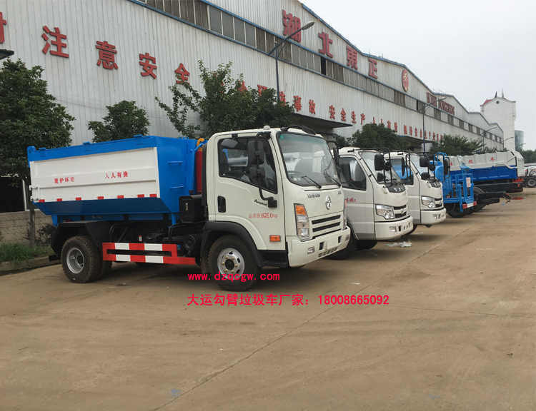 產(chǎn)品介紹:車廂可卸式垃圾車也叫拉臂式垃圾車,是一種采用高新設(shè)計(jì)可伸縮的鉤臂,實(shí)現(xiàn)垃圾廂的二次吊裝,自吊上放下,可自行傾倒垃圾。 該車結(jié)構(gòu)簡單,操作穩(wěn)定方便,裝卸效率高,機(jī)械化程度高,節(jié)省人力。一車可帶多個(gè)大廂,在裝卸的運(yùn)輸過程中可有效地避免二次污染。