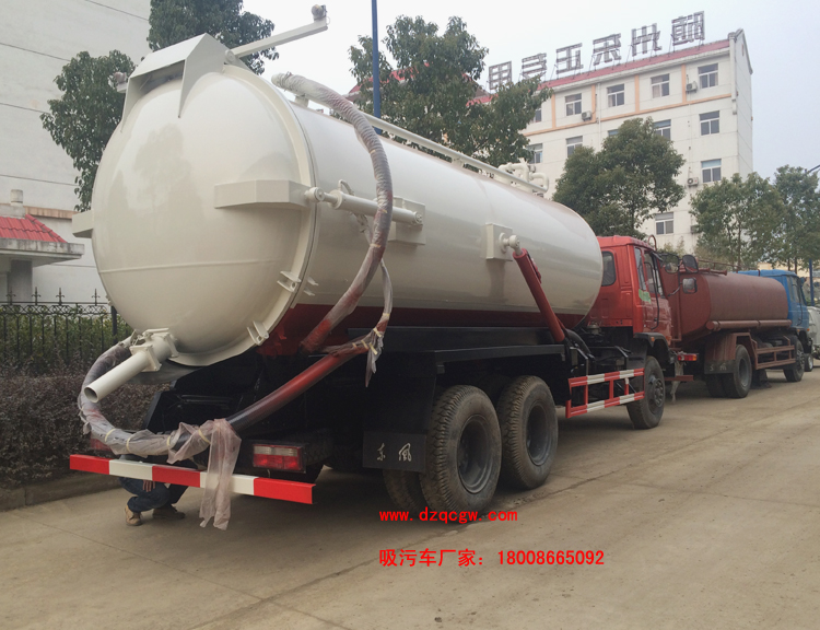 底盤說明:東風后雙橋新款駕駛室,4350+1300mm軸距,康明斯220馬力國五發(fā)動機,陜齒八檔變速箱,5噸前橋,10噸雙后橋,11.00R20鋼絲胎,動力轉向,斷氣剎。罐體有效容積:15.48立方米,介質:液態(tài)污物,罐體外形尺寸(直段長×直徑)(mm):5600×1950。 |