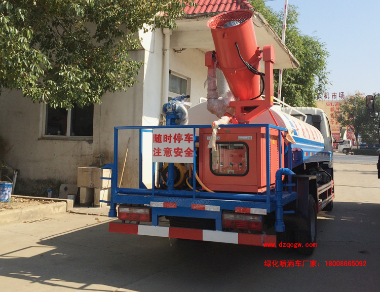 改裝部分:裝配工作平臺,安裝農(nóng)藥噴灑專用炮及綠化灑水炮(若有特殊要求還可安裝消防灑水車的消防灑水泵),送藥筒可360度全方位的旋轉(zhuǎn),以便各種角度的農(nóng)作物及植物都能受益。在工作平臺尾部配備專用小發(fā)動機組,為農(nóng)藥噴灑炮提供專一的動力源來達到更好的霧化效果,射程可達到45米,為各種工作環(huán)境下的作業(yè)提供有效的保障。配備專用灑水泵及灑水系統(tǒng),可抽水排水,也可通過消防栓進水。